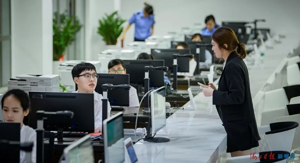 在海口江东新区政务服务中心,一名女士在窗口办理相关业务。海口日报融媒体记者 陈长宇 摄